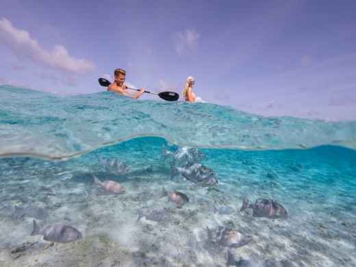 島の周辺は美しい遠浅ビーチとなっているためインスタ映えする写真が撮れると人気ですが、「シュノーケリングが楽しめないのでは?」という方も1日1回シュノーケリングトリップ*があり、島から10分程の美しい珊瑚礁が広がるポイントで思う存分シュノーケリングを楽しむ事ができます。