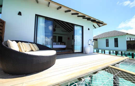 ◆水上ヴィラにはハンモックと直接海へ下りられる階段付き!