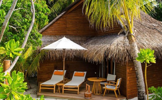 客室数全36室のうち30室が1棟2室タイプの水上コテージとなっており、島全体の建物も茅葺屋根や木材を多く取り入れ昔ながらのナチュラルな雰囲気を残しています。