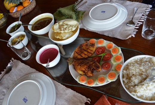 ハウスボートでのランチでは、美味しいケララ料理をご堪能ください。